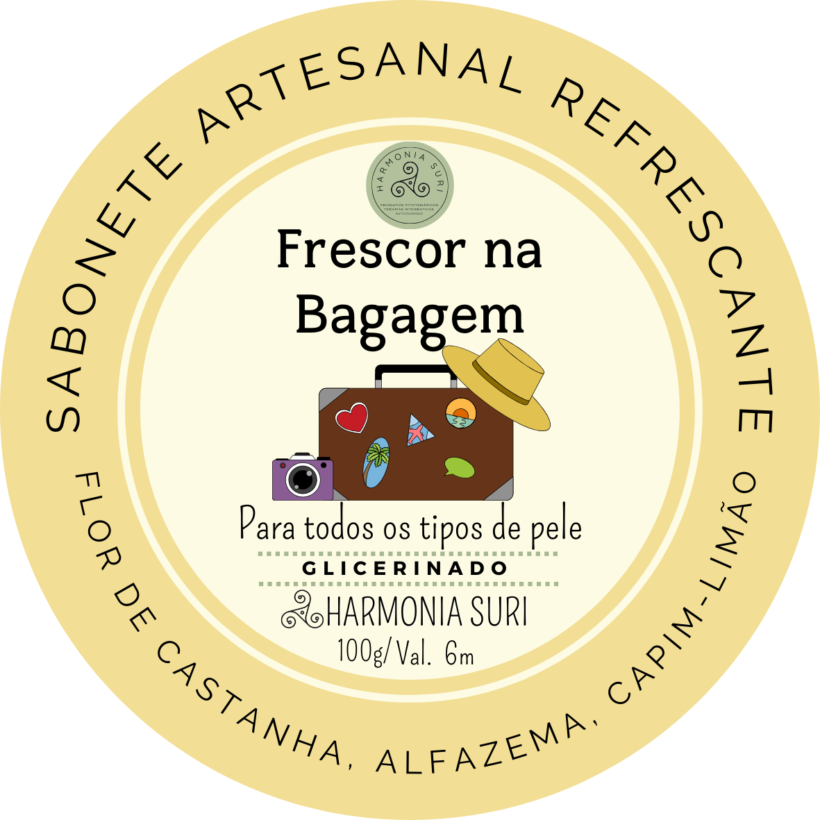 Base Vegetal Glicerinada, Lauril, Óleo Vegetal, Bucha Vegetal, Manteiga Vegetal, Vitamina E, Bepantol, Óleo Essencial de Melaleuca e Essência de Flor de Castanha, Alfazema e Capim-Limão.