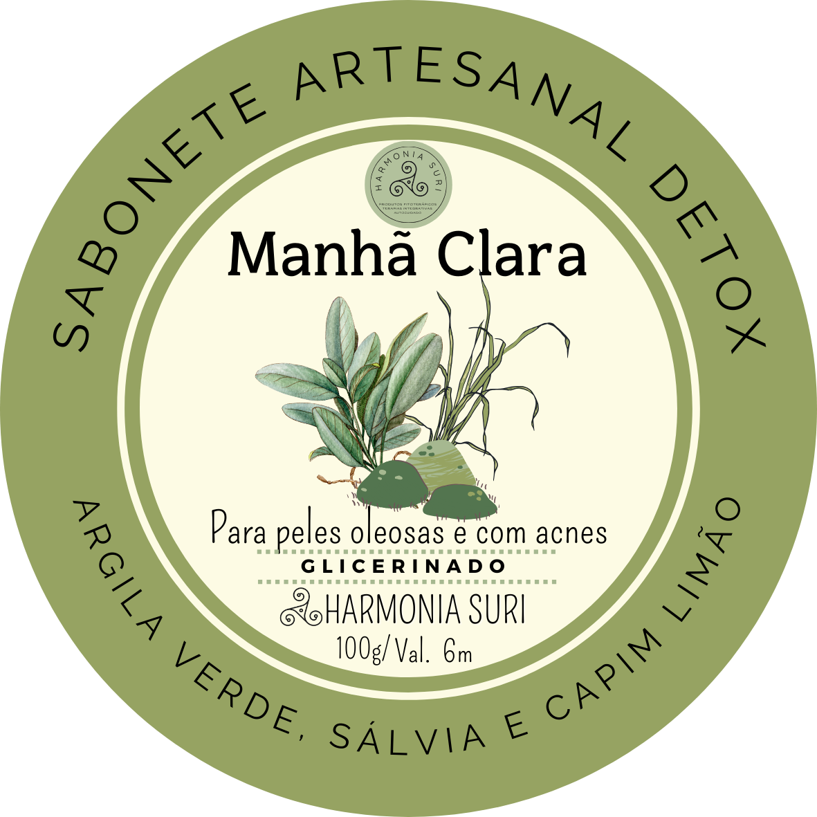 Base Vegetal Glicerinada, Lauril, Óleo Vegetal, Manteiga Vegetal, Vitamina E, Bepantol, Argila Verde, Capim Limão, Sálvia e Óleos Essenciais de Capim Limão e Cedro.